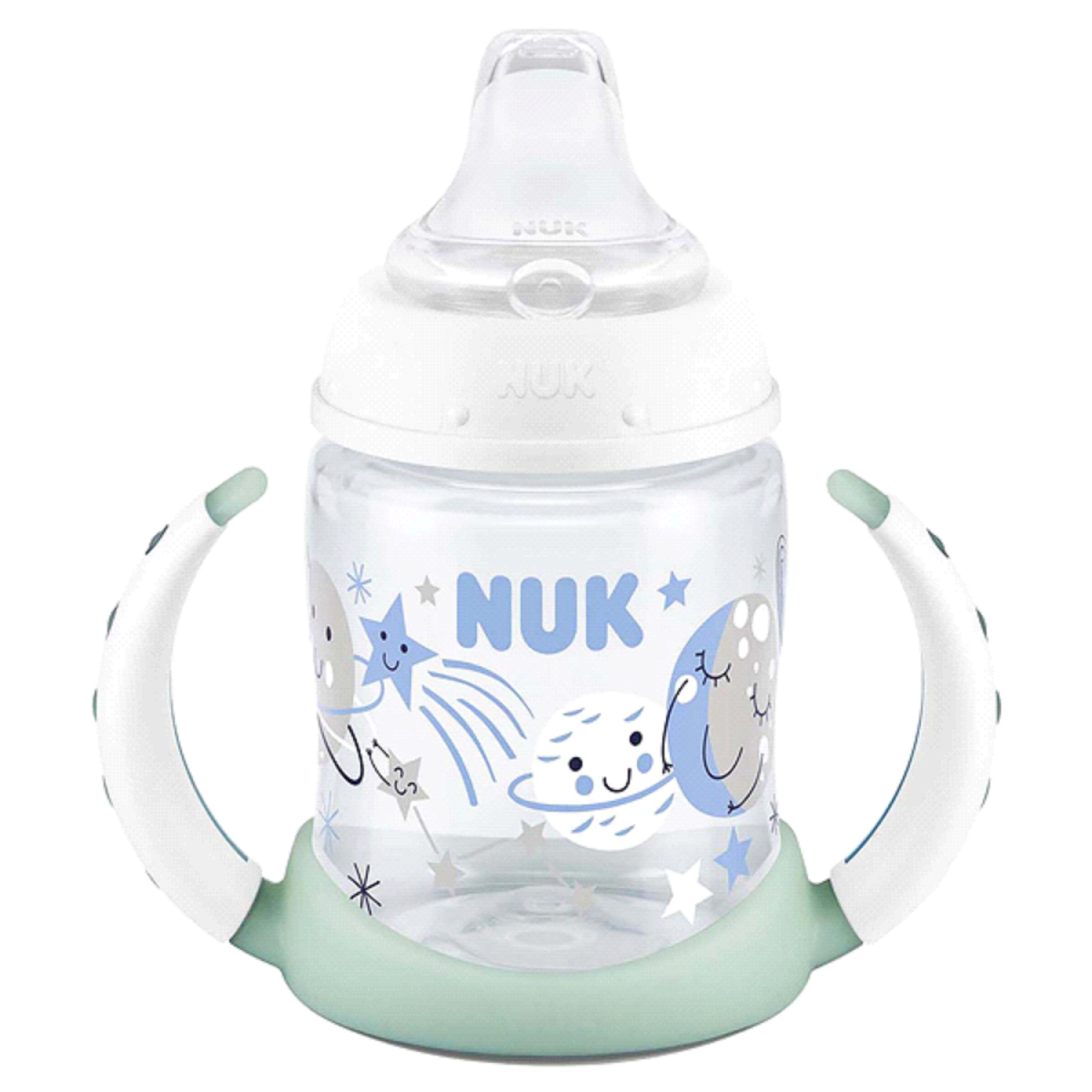 The NUK Learner Cup easily promotes babys transition from breast or bottle to cup. It features a spillproof soft spout that is gentle on teeth and gums and easytogrip, removable handles that your grow…