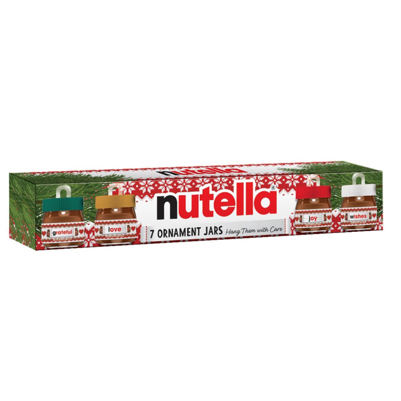 Just in for the holiday season, these 7 mini jars of Nutella hazelnut spread are actually ornaments for your tree! Hang them with care and admire the heartwarming labels, which include "Grateful," "Lo…