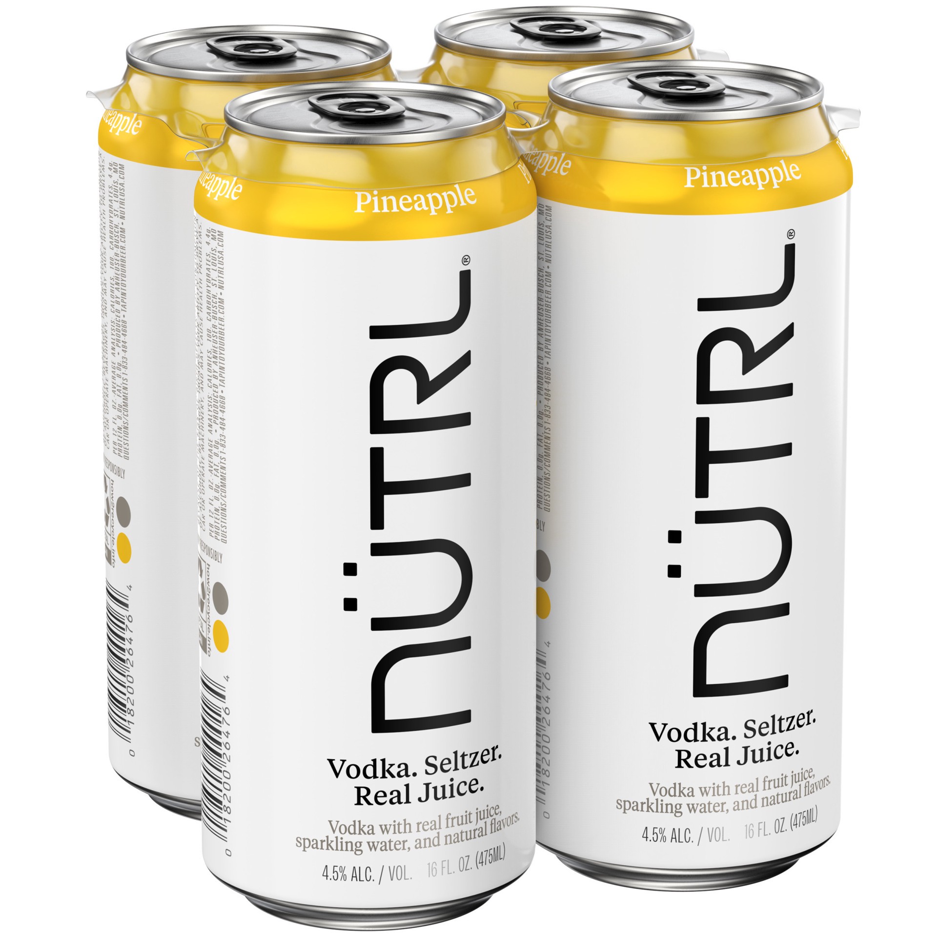 Nutrl Pineapple Vodka Hard Seltzer 4 Pack, 16 fl oz Cans