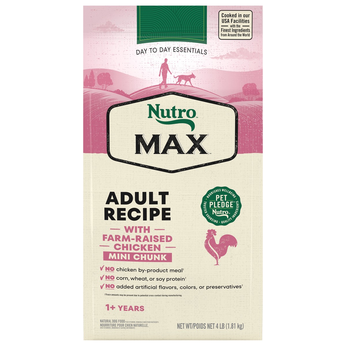 Calorie Content (Calculated): 3624 kcal ME/kg, 334 kcal ME/cup. Nutro Max Mini Chunk Adult Recipe With Farm-Raised Chicken Dog Food is formulated to meet the nutritional levels established by the AAFC…