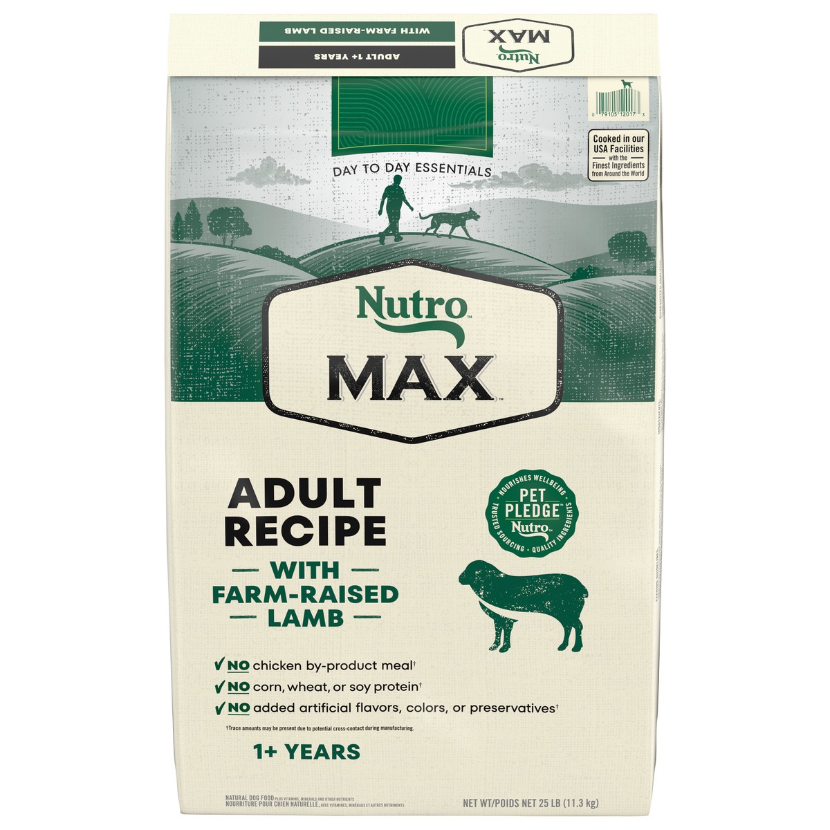 Calorie Content (Calculated): 3626 kcal/kg, 343 kcal ME/cup. Nutro Max Adult Recipe With Farm-Raised Lamb Dog Food is formulated to meet the nutritional levels established by the AAFCO Dog Food Nutrie…