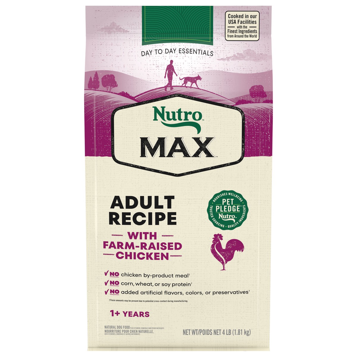 Calorie Content (Calculated): 3647 kcal ME/kg, 354 kcal ME/cup. Nutro Max Adult Recipe With Farm-Raised Chicken Dog Food is formulated to meet the nutritional levels established by the AAFCO Dog Food …
