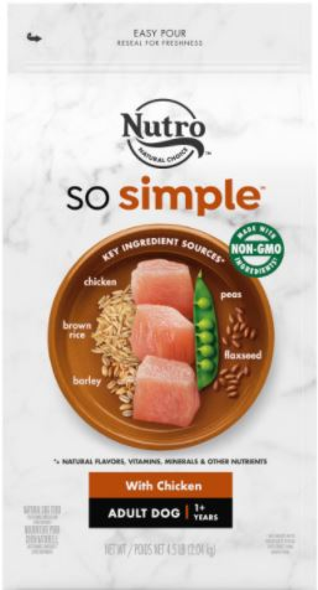 Calorie Content (Calculated): 3663 kcal ME/kg\, 377 kcal ME/cup. Nutritional Adequacy Statement: Nutro So Simple With Chicken Adult Dog Food is formulated to meet the nutritional levels established by…