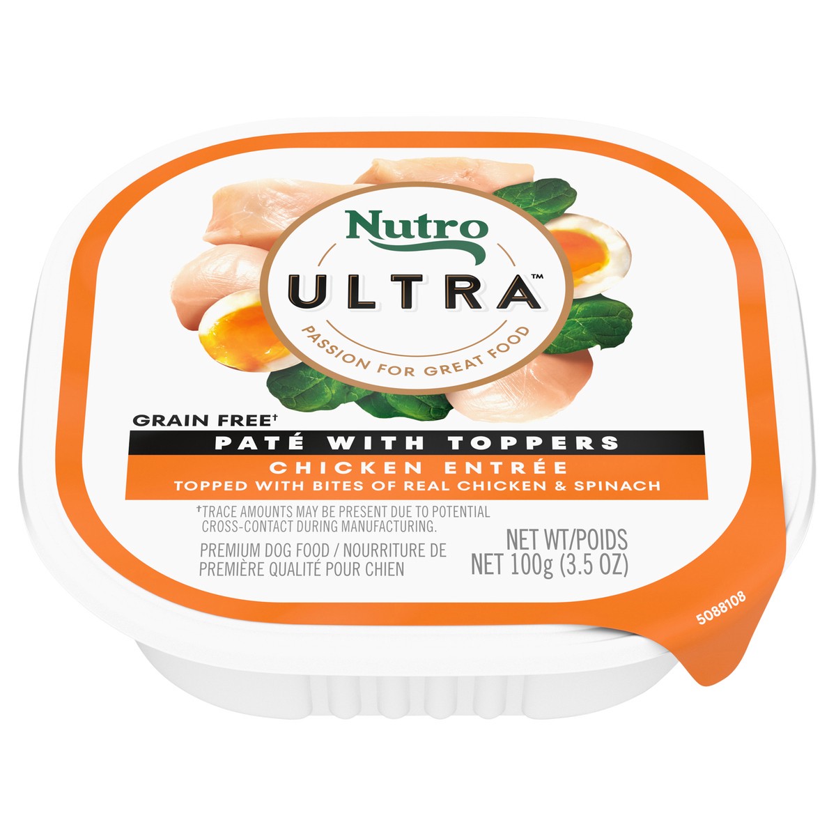 Calorie Content (calculated): 1210 kcal ME/kg, 121 kcal ME/tray. Nutro Ultra Chicken Entree Topped with Bites of Real Chicken & Spinach Dog Food is formulated to meet the nutritional levels establishe…