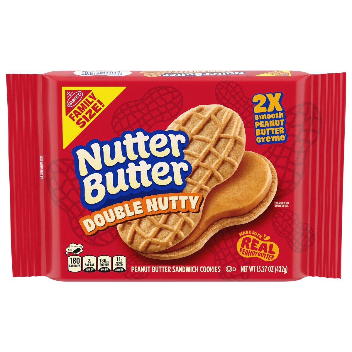NUTTER BUTTER Double Nutty Peanut Butter Sandwich Cookies, Family Size, 15.27 oz