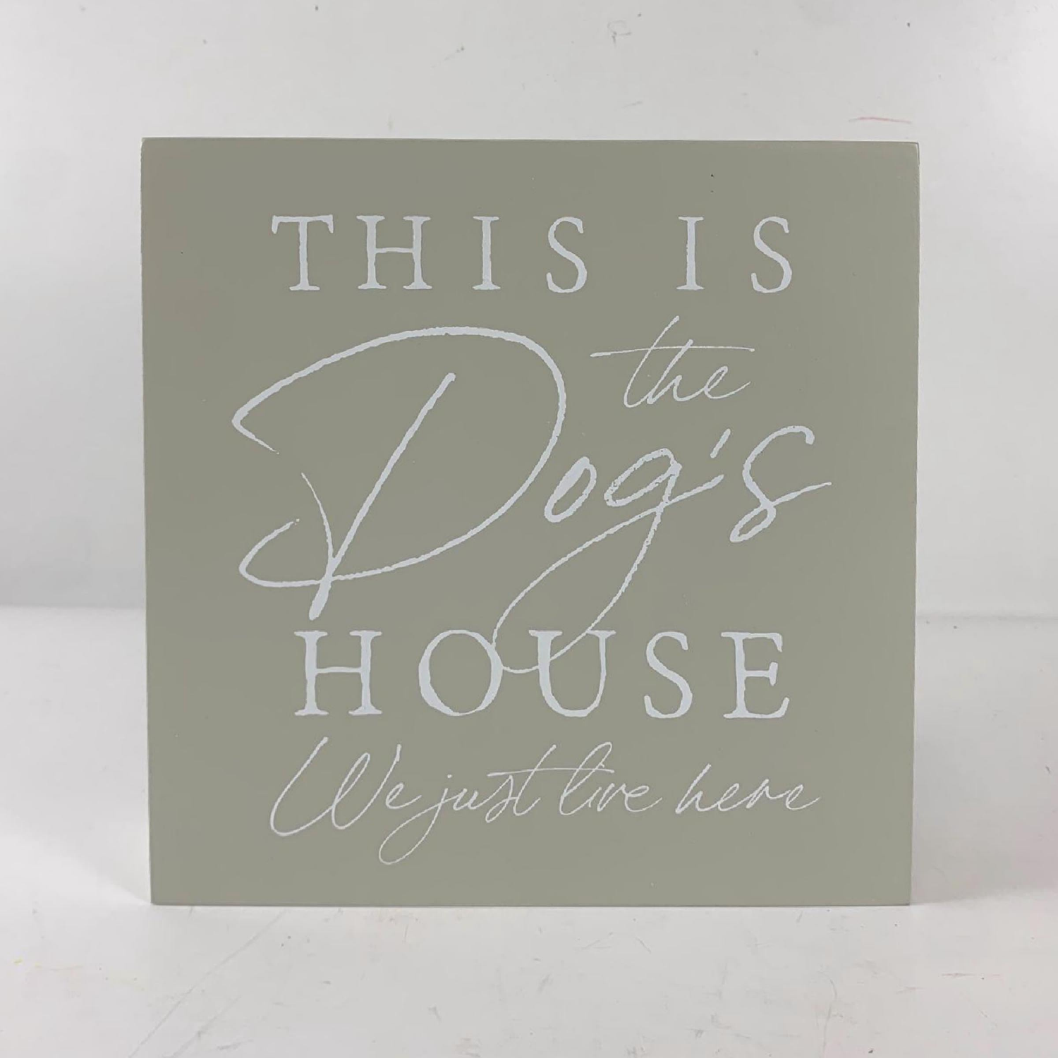 Gray block clever caption with a white printed sentiment reading "this is the dog's house we just live here".