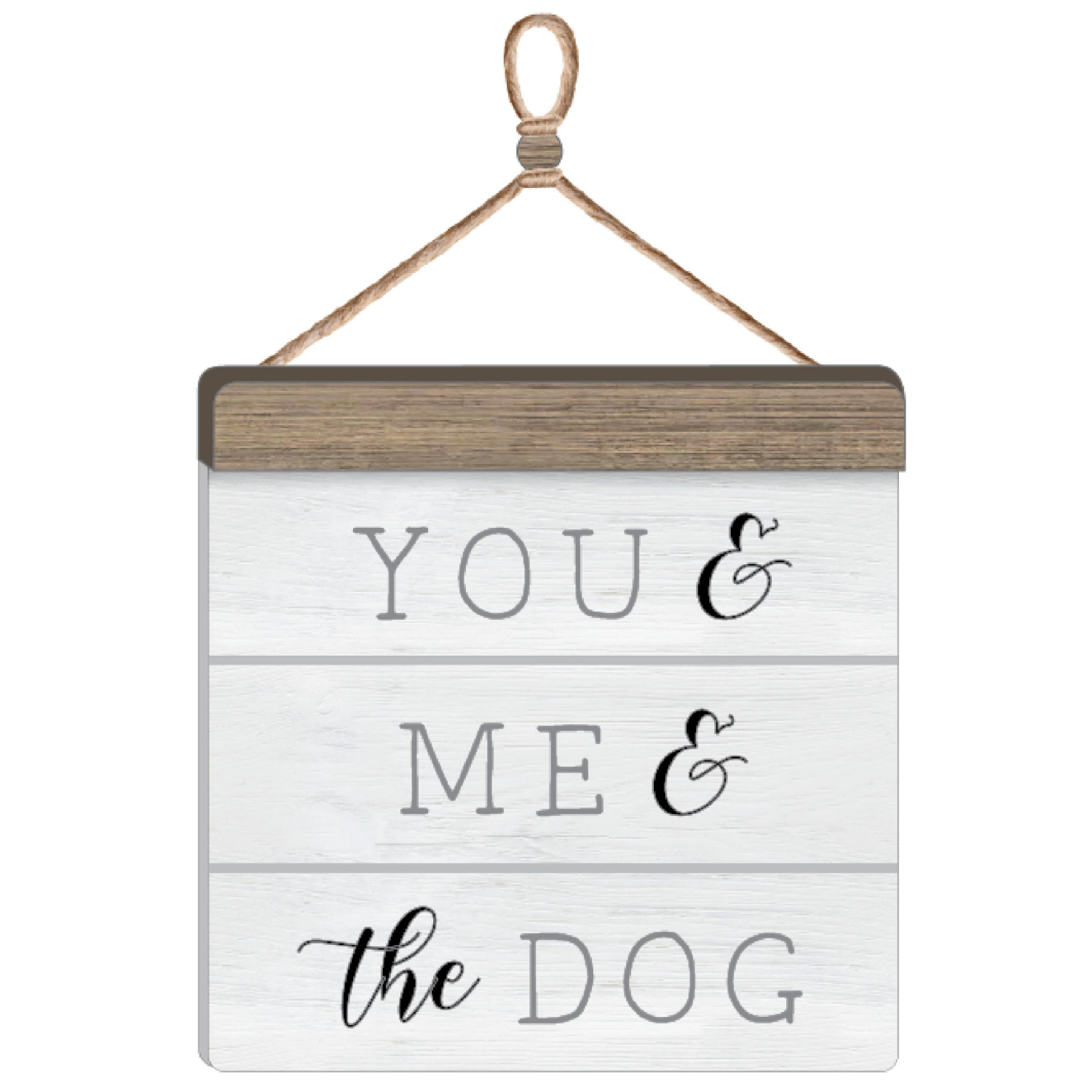 You & me & the dog hanging plaque wall hanger featuring a jute rope hanger and routed plaques.
