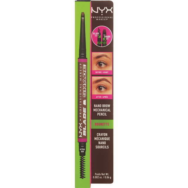 Shape & shade your eyebrows with the NYX Cosmetics Blade & Shade nano brow pencil. Our ultra fine, auburn eyebrow pencil defines your eyebrows for up to 16 hours.
