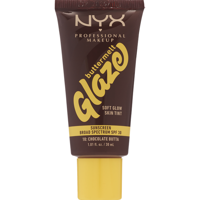 Get glazed skin with new NYX Cosmetics skin tint with SPF, Buttermelt Glaze in shade Chai Butta. This glowy skin tint melts right in, made with skin loving ingredients.