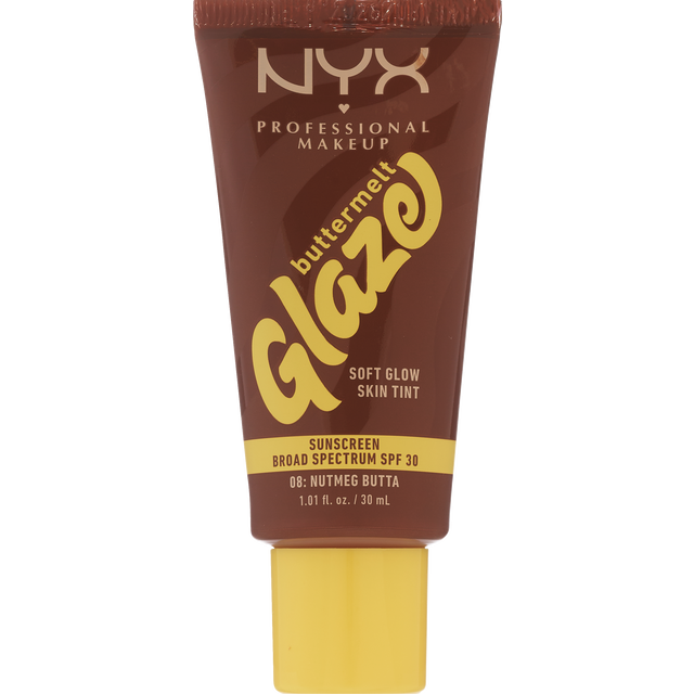 Get glazed skin with new NYX Cosmetics skin tint with SPF, Buttermelt Glaze in shade Chai Butta. This glowy skin tint melts right in, made with skin loving ingredients.