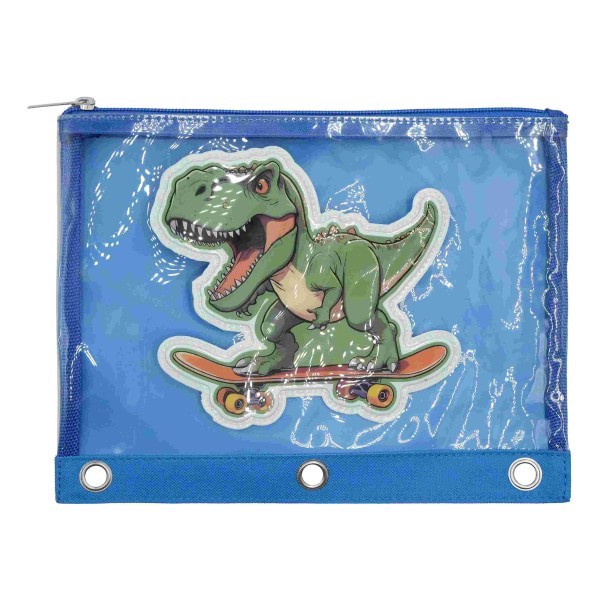 slide 2 of 2, Office Depot® Brand 3-Ring Puffer Pencil Pouch, 7-7/8"" x 10"", Blue/Dino, 1 ct