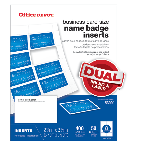 Office Depot Brand Badge Inserts, 2 1/4"" X 3 1/2"", White, Pack Of 400