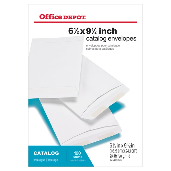 slide 3 of 3, Office Depot Brand Catalog Envelopes, White, 100 ct; 6 1/2 in x 9 1/2 in