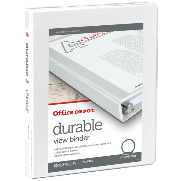 Great for homework assignments and office records, this Office Depot durable view roundring binder helps keep important papers together. Add a label to the covers and spine to ensure the binder can ea…