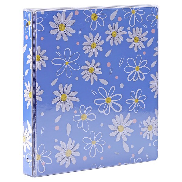 slide 3 of 3, Office Depot® Brand Fashion 3-Ring Binder, 1"" Round Rings, Blue Flowers, 1 ct