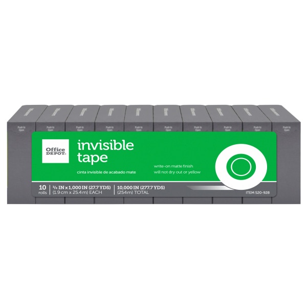 Office Depot Brand Invisible Tape, 3/4'' X 1,000'', Pack Of 10