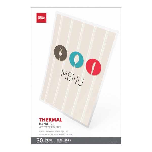 Office Depot Brand Laminating Pouches, Menu Size, 3 Mil, 11-1/2"" X 17-1/2"", Pack Of 50