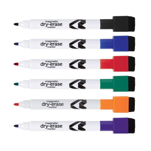 Office Depot Brand Magnetic Dry-Erase Markers With Erasers, Assorted Colors, Pack Of 6