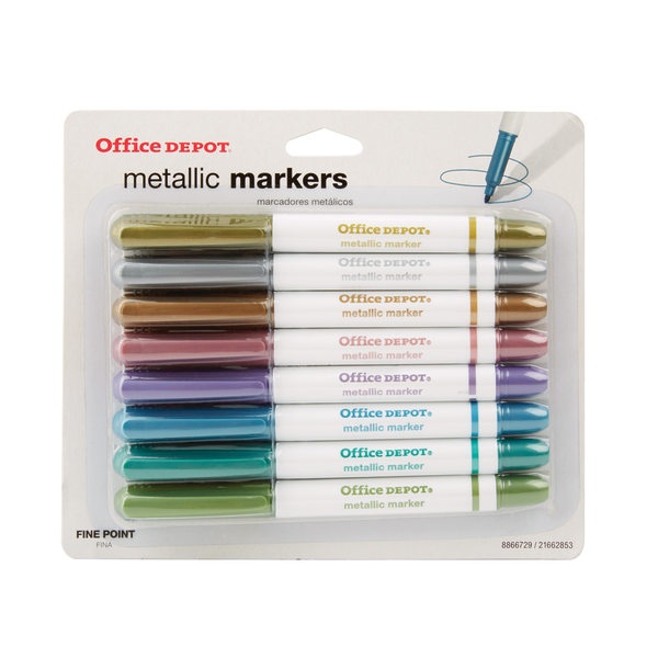 Office Depot Brand Metallic Markers, Bullet Point, Assorted Colors, Pack Of 8