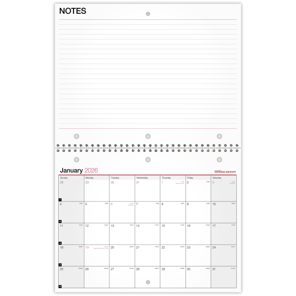 slide 2 of 2, Office Depot Brand Monthly Desk Wall Calendar, 11"" x 8 1/2"", White, January 2026 to December 2026, OD30152826, 1 ct