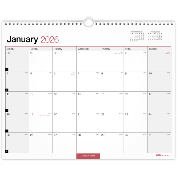 Office Depot Brand Monthly Wall Calendar, 15"" x 12"", White, January 2026 to December 2026, OD30242826