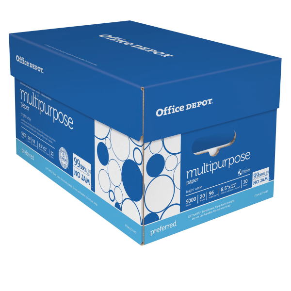 Office Depot Brand Multi-Use Paper, Letter Size (8-1/2'' X 11''), 96 (U.S.) Brightness, Ream Of 500 Sheets, Case Of 10 Reams