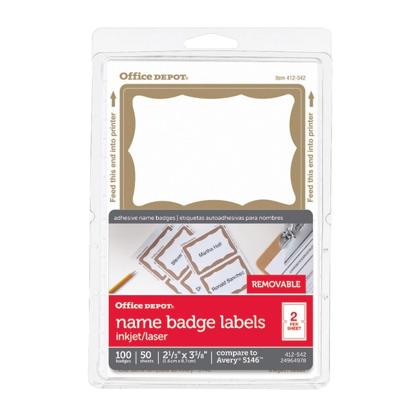 slide 2 of 2, Office Depot Brand Name Badge Labels, Gold Border, 100 ct; 2 11/32 in x 3 3/8 in
