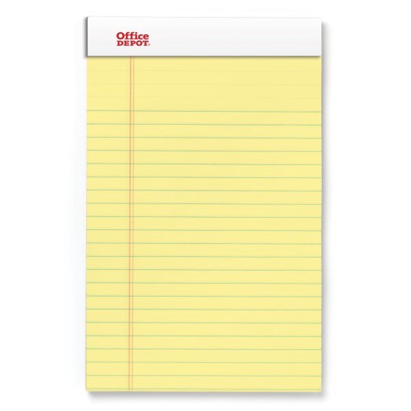 Office Depot Brand Perforated Writing Pads Narrow Ruled Canary