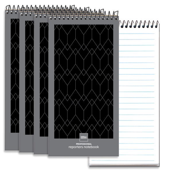 Office Depot Brand Professional Reporter's Notebook, 4"" X 8"", Black/Gray, Legal/Wide Ruled, 140 Pages (70 Sheets), Pack Of 4