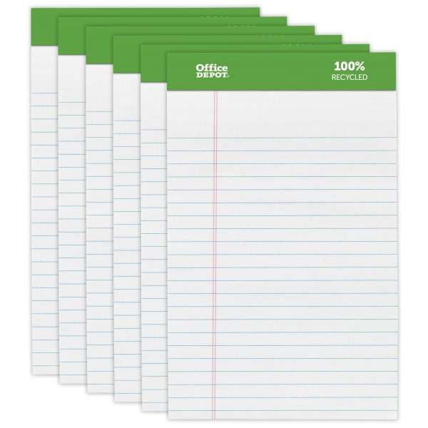 Office Depot Brand Professional Writing Pads, 5" X 8", Narrow Ruled, 50 Sheets, 100% Recycled, White/Green, Pack Of 6 Pads