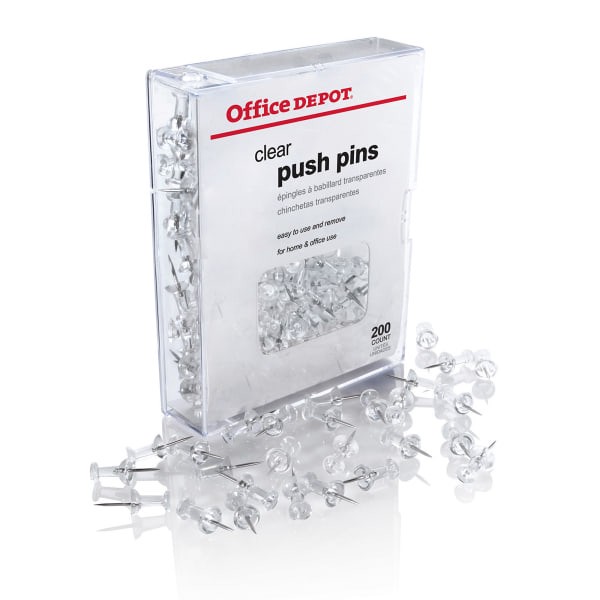 Office Depot Brand Pushpins, Round, 1/2", Clear, Pack Of 200