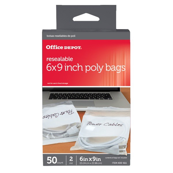 slide 6 of 6, Office Depot Brand Reclosable Bags with Write-On Panel, 50 ct; 6 in x 9 in