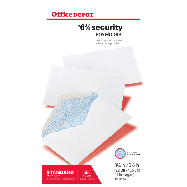 Office Depot Brand Security Envelopes, #6 3/4, White