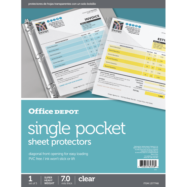 Office Depot Brand Single Pocket Sheet Protectors, 8-1/2'' X 11'', Clear, Pack Of 5