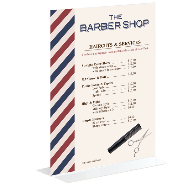 Freestanding signs are ideal for limited space Stands by itself on any table or desktop. Holds a variety of literature sizes. Durable clear acrylic material protects and displays your sign. Sign conveā¦