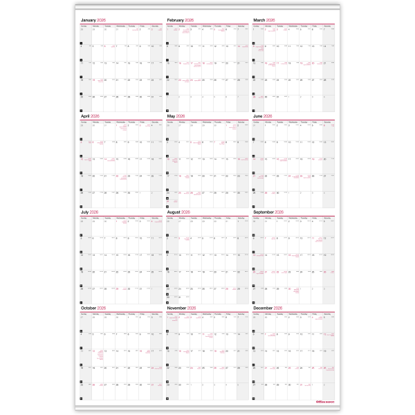 slide 2 of 2, Office Depot Brand Yearly Wall Calendar, 24"" x 36"", White, January 2026 to December 2026, OD30142826, 1 ct