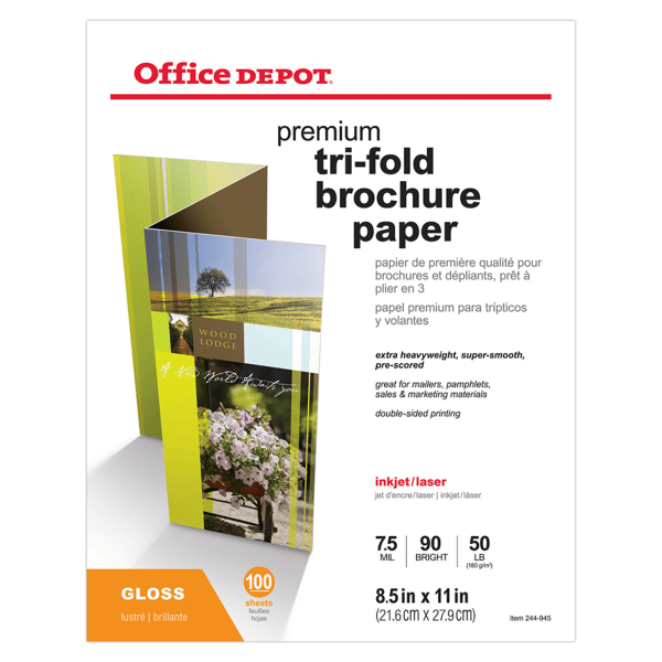 Office Depot Double-Sided Presentation Paper, Glossy, Tri-Fold, Letter Size