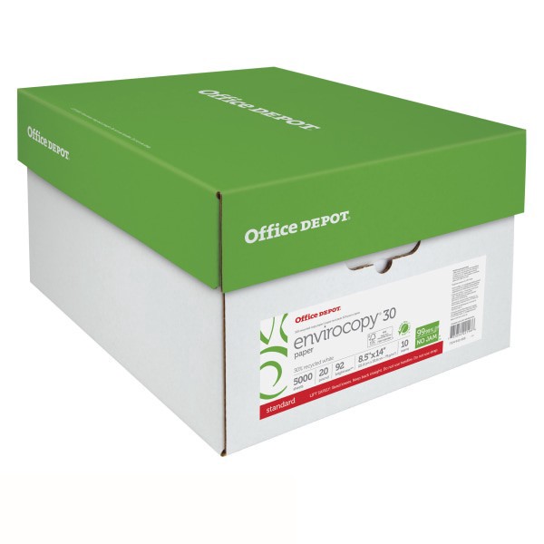 Office Depot® EnviroCopy® Copy Paper, 10 Reams, White, Legal (8.5"" x 14""), 5000 Sheets Per Case, 20 Lb, 30% Recycled, FSC® Certified