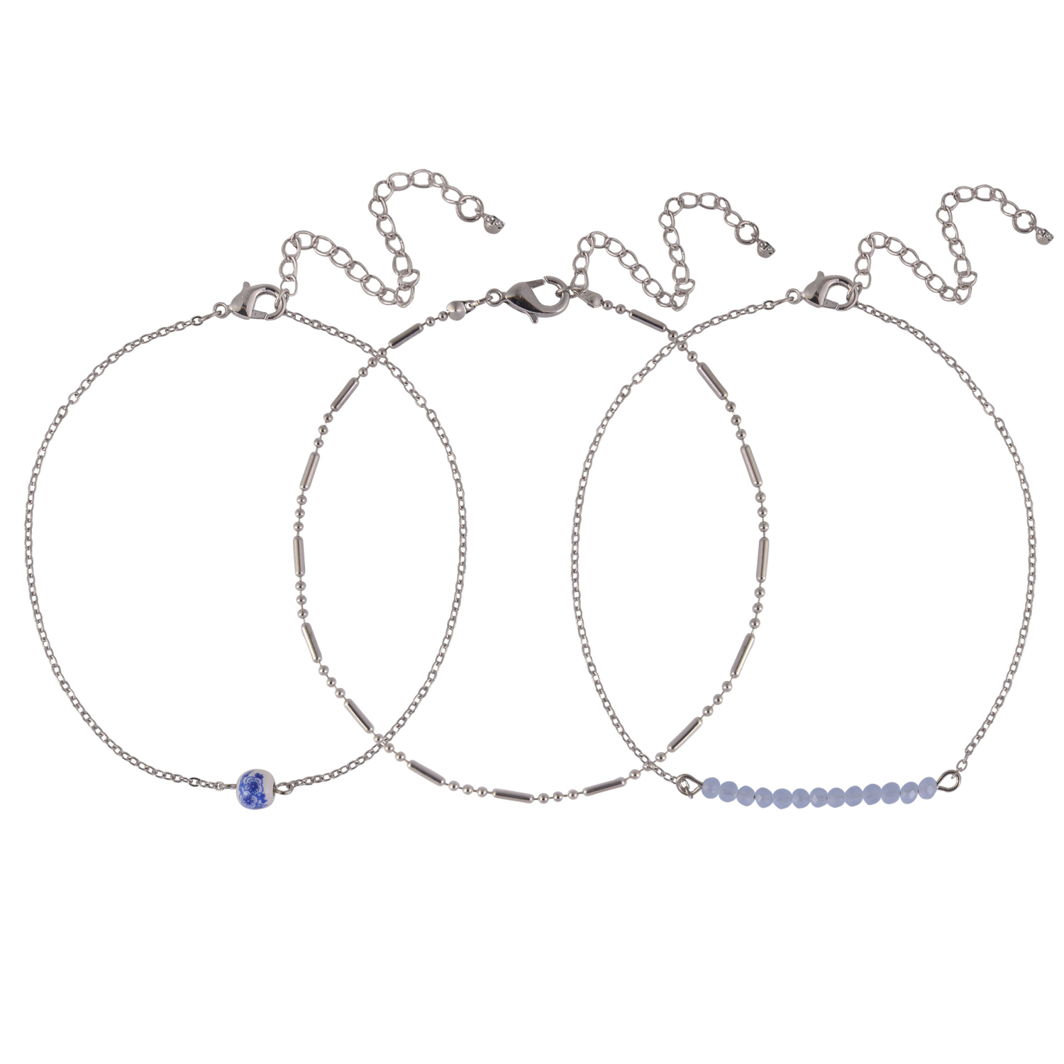 slide 1 of 1, Oh Hello Blue Bead Ball Anklet Set Silver, One Size