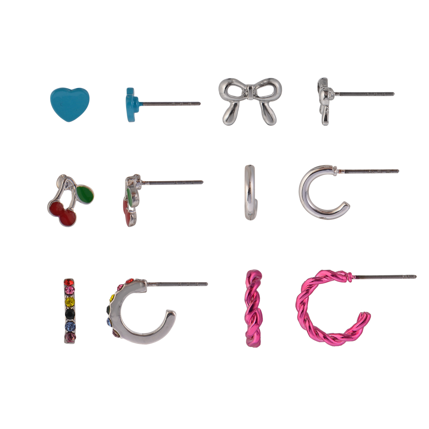 slide 1 of 1, Oh Hello Cherry Bow Earring Set Silver, One Size