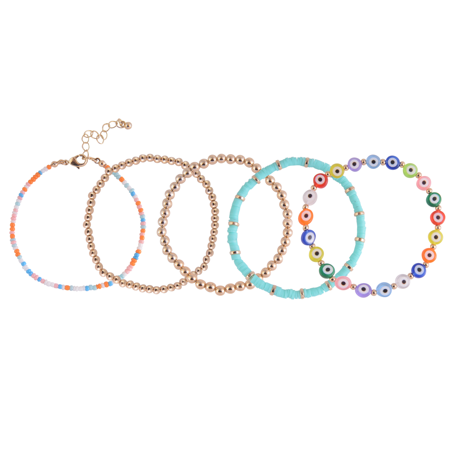slide 1 of 1, Oh Hello Color Bead Bracelet Set Gold, One Size