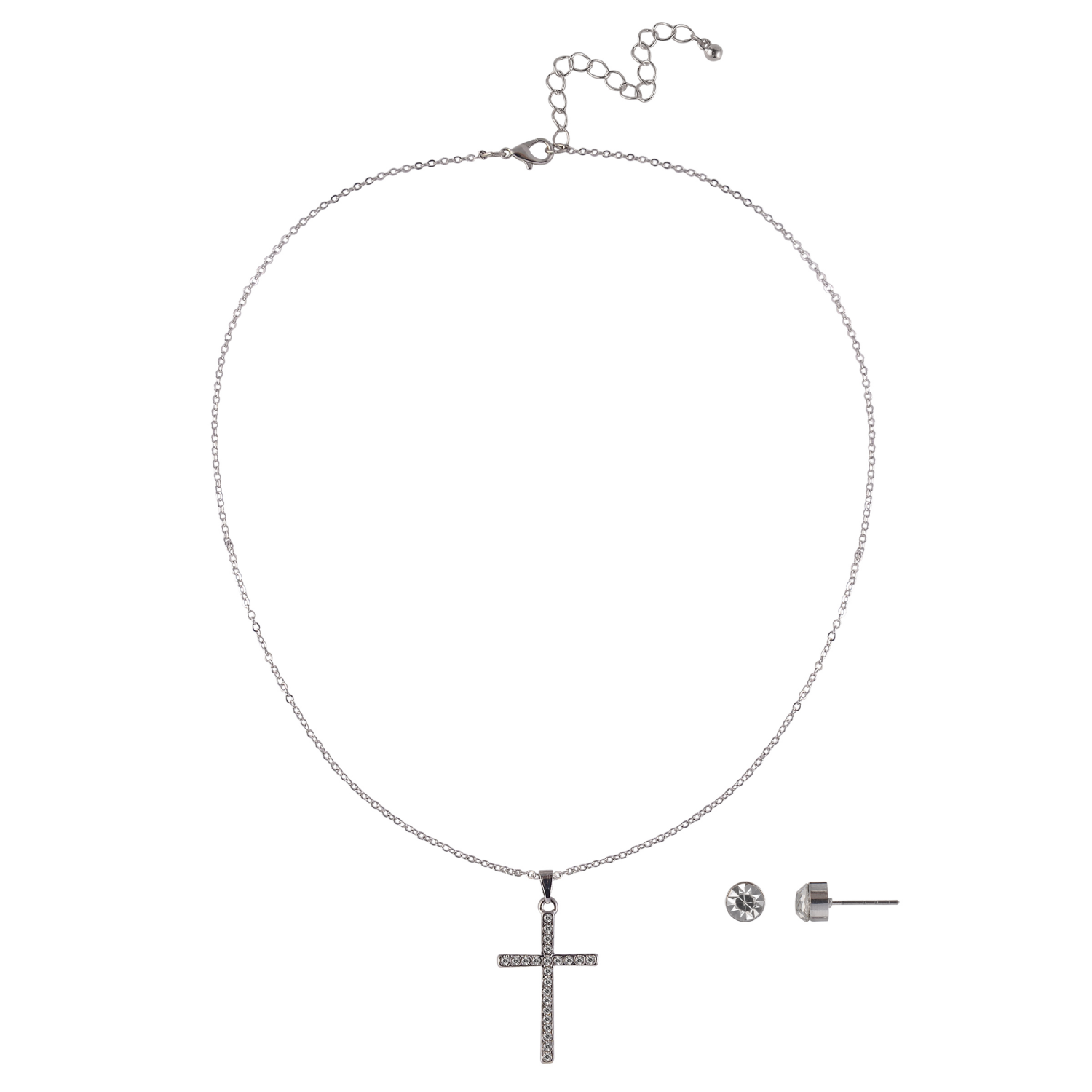 Oh Hello Cross and stud Necklace and Earring Set Silver