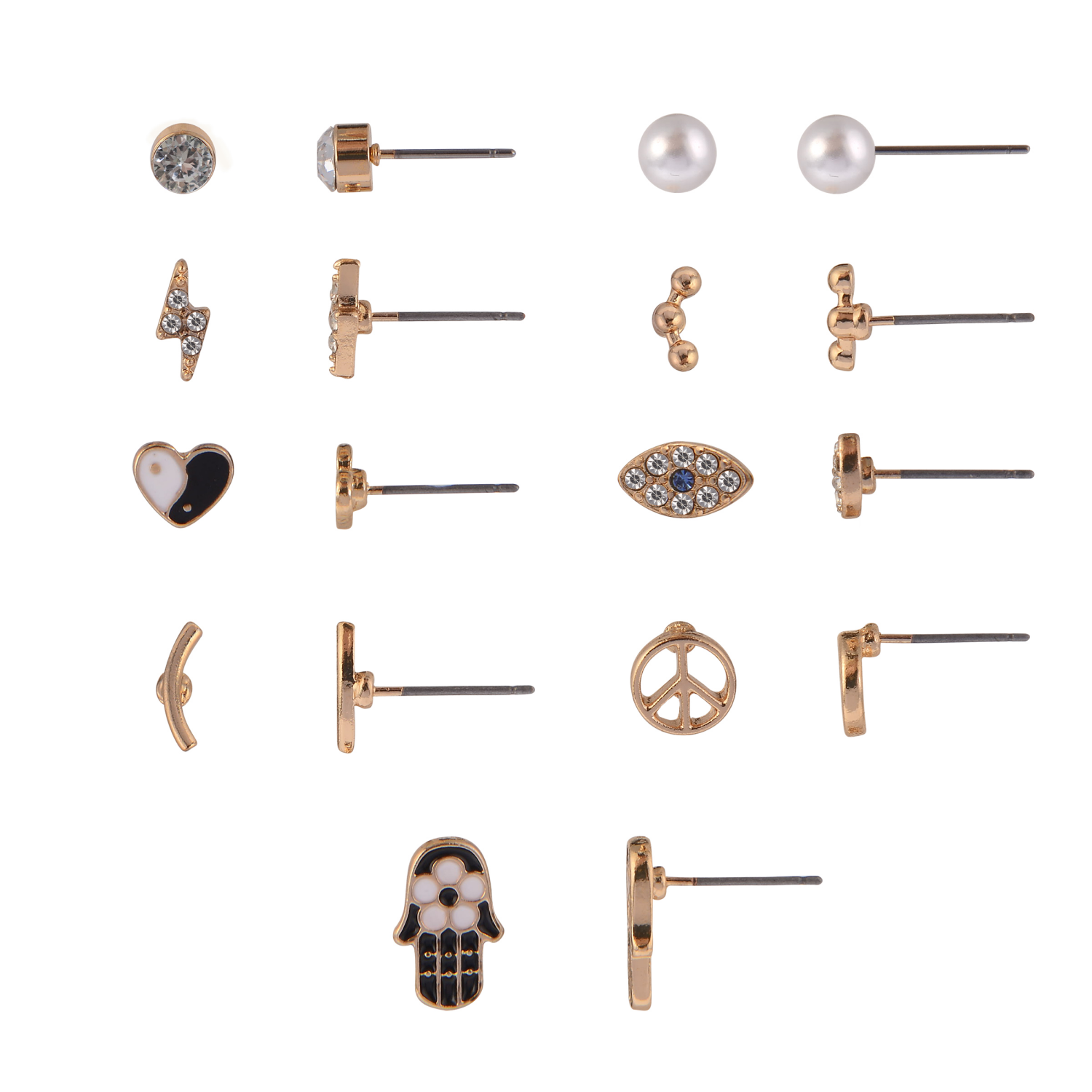 slide 1 of 1, Oh Hello Crystal Stud Symbol Earring Set Gold, One Size