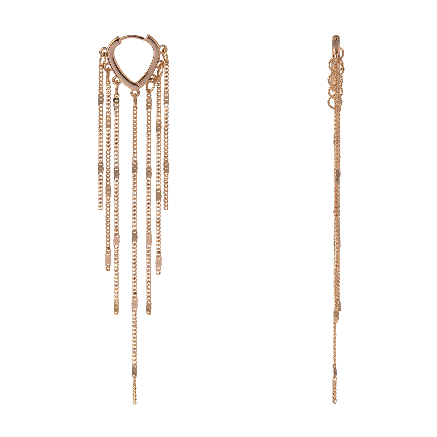 Layered Disc Chain Drop Hoop Earring Gold