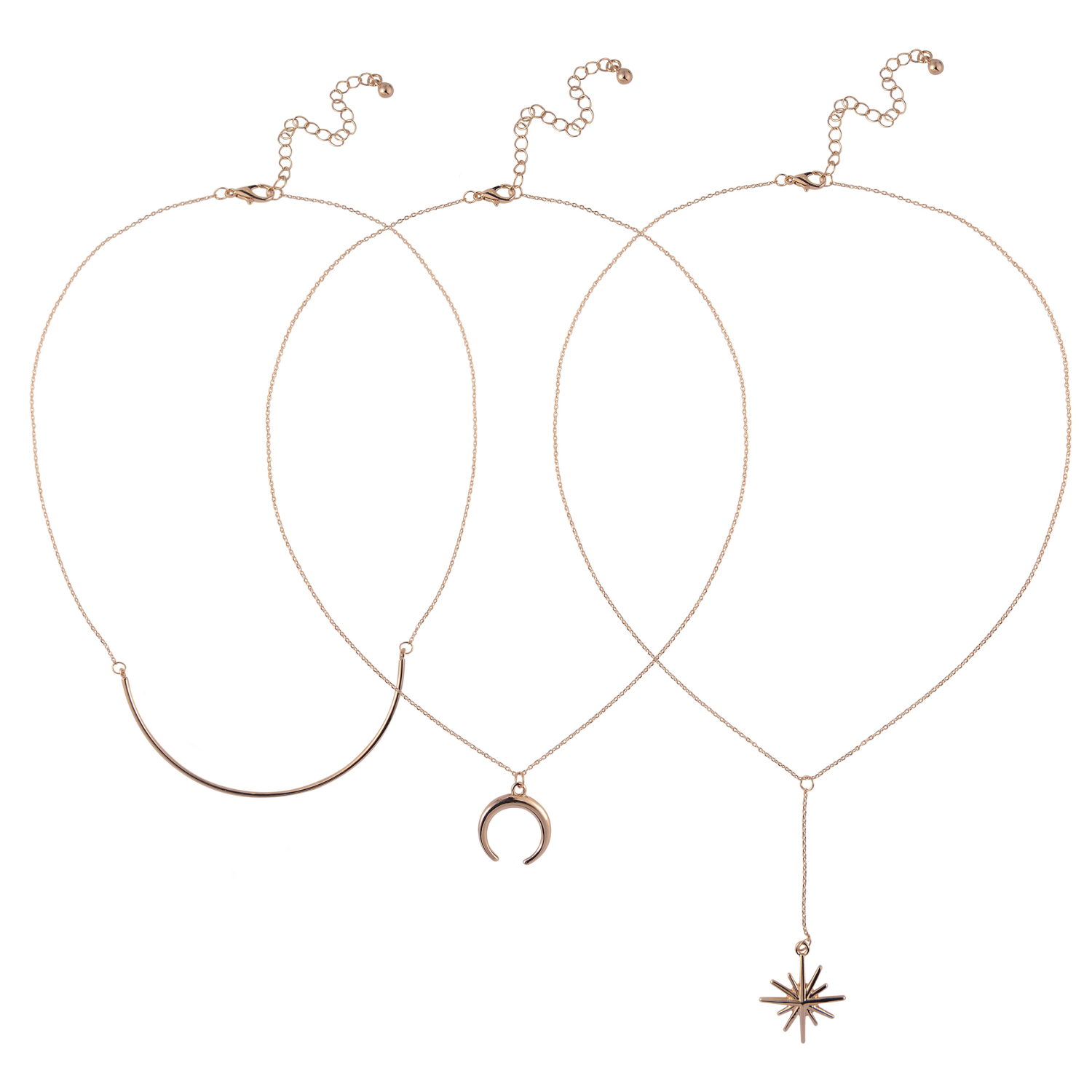 Moon and Star Layered Necklace Gold