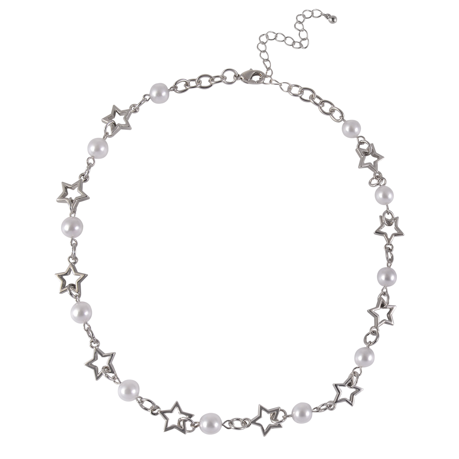 slide 1 of 1, Oh Hello Pearl and Star Link Necklace Silver, One Size