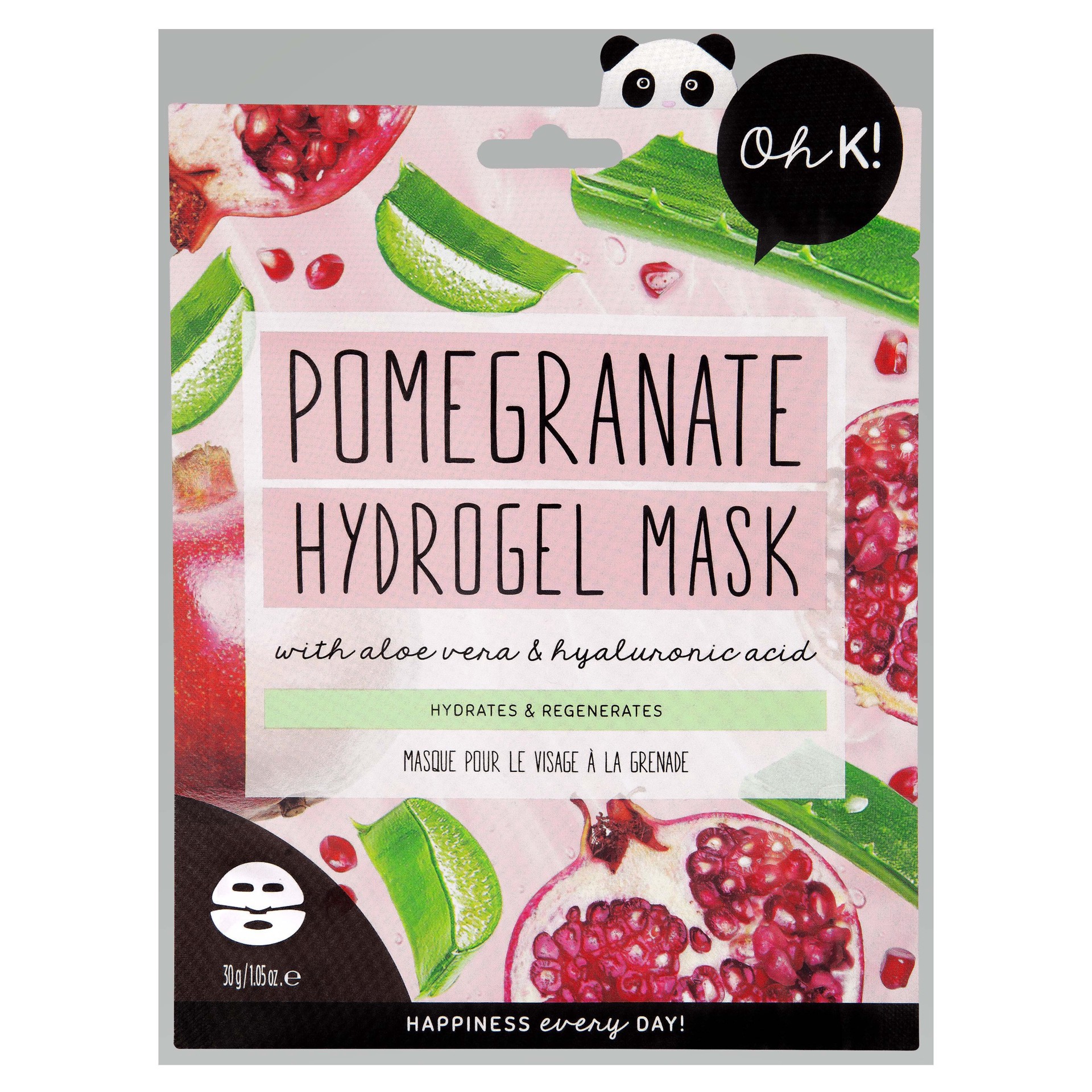 Oh K! Pomegranate & Hyaluronic Hydrogel Mask "An ultra hydrating hydrogel mask for skin that needs a soothing boost! This super hydrating hydrogel mask is infused with hyaluronic acid to plump skin wi…