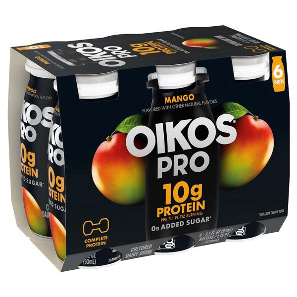 Oikos Pro Mango Dairy Drink, 10g of Protein, 0g Added Sugar, Convenient High Protein Snack, 6ct, 3.1 Fl Oz Bottle