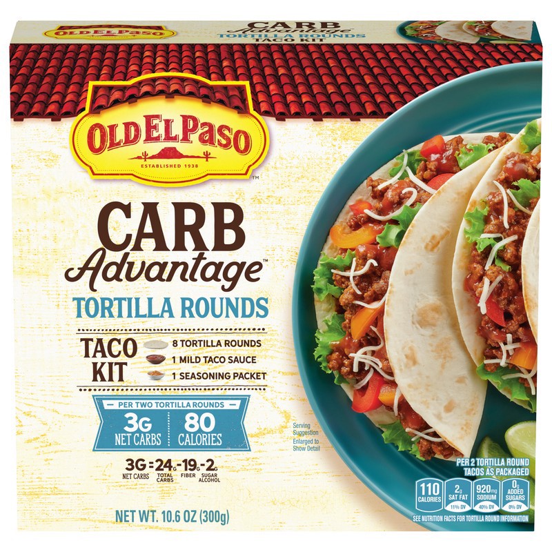 Enjoy the Old El Paso CARB Advantage Tortilla Rounds Taco Kit you love, the Carb Advantage way. Each two-Kit serving of Old El Paso Carb Advantage Taco Kit contains 3g net carbs* and 80 calories. Stuf…