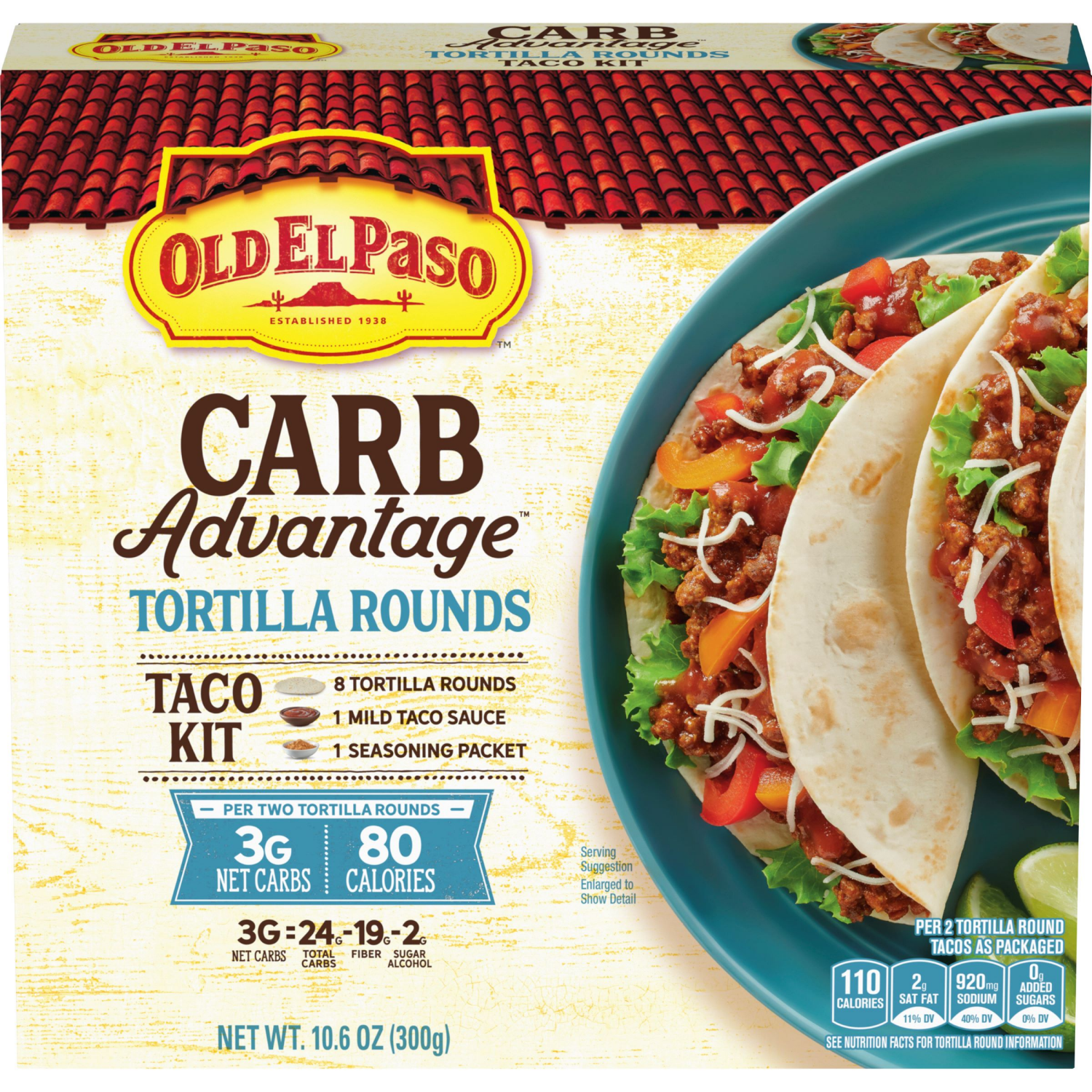 Enjoy the Old El Paso CARB Advantage Tortilla Rounds Taco Kit you love, the Carb Advantage way. Each two-Kit serving of Old El Paso Carb Advantage Taco Kit contains 3g net carbs* and 80 calories. Stuf…